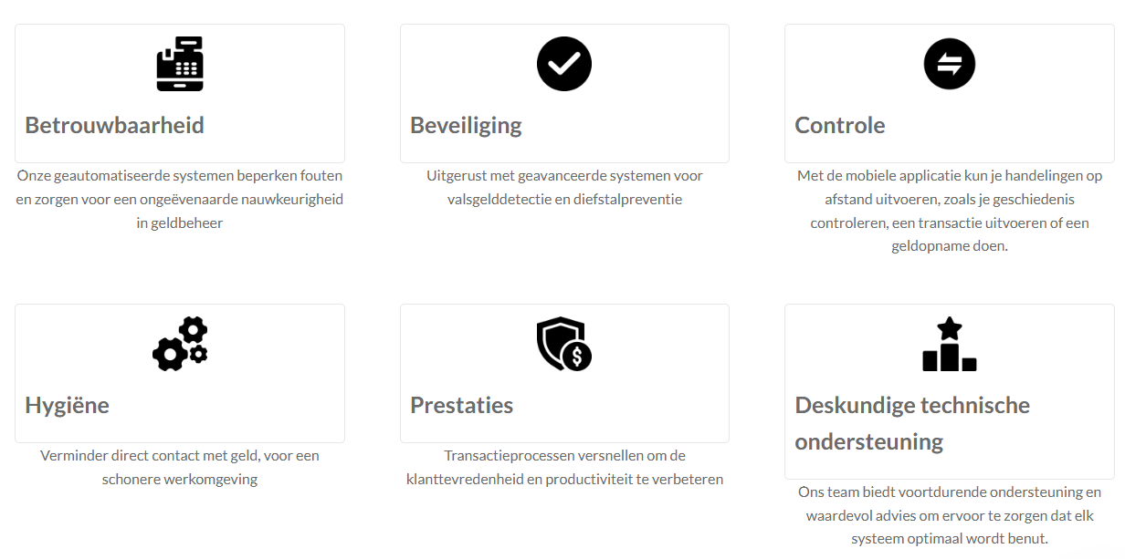 We zien een toekomst voor ons waarin geldwisselprocessen volledig geautomatiseerd zijn, waardoor de operationele efficiëntie wordt gemaximaliseerd en het gebruik van bankbiljetten en munten behouden blijft. Ons doel is om deze transacties voor alle betrokkenen te vereenvoudigen en te beveiligen met behulp van geavanceerde technologieën.